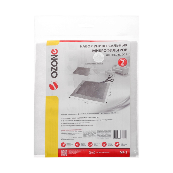 Микрофильтры MF-5 Ozone являются универсальными, что означает, что они подходят для многих моделей пылесосов разных производителей. Их размер составляет 250х200 мм, что делает их подходящими для большинства стандартных пылесосов.
