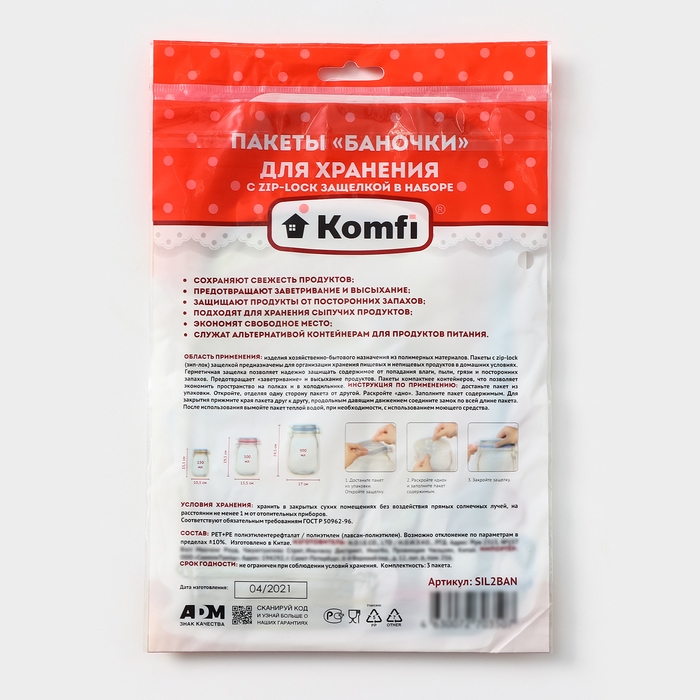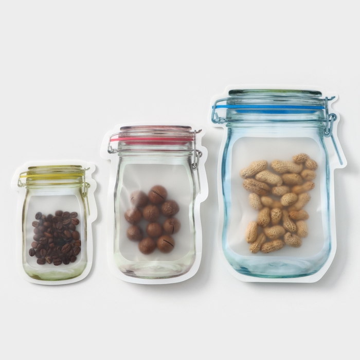 Пакеты для хранения с защелкой «Баночки», 0,9 л, 0,5 л, 0,15 л