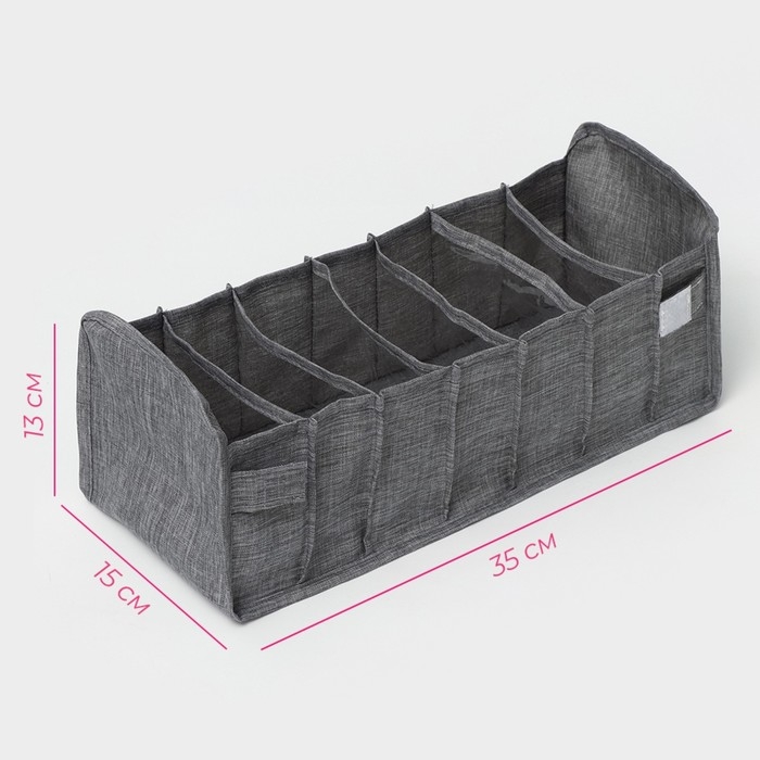 Органайзер для хранения белья Доляна, 7 ячеек, 35×15×13 см, цвет серый