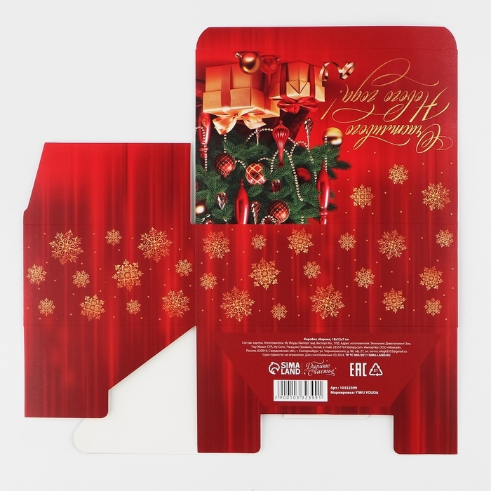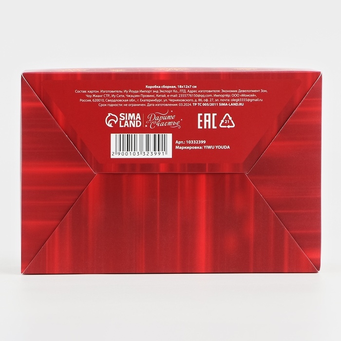 Коробка подарочная новогодняя складная «Счастливого Нового года », 18 х 12 х 7 см, Новый год