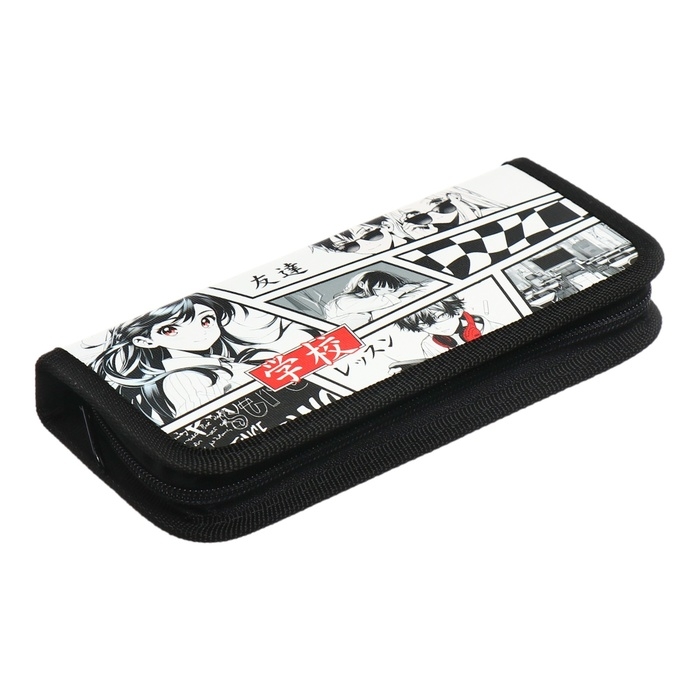 Пенал 3 секции, вкладка внутри, 140 х 210 х 40 мм, тканевый, Calligrata TOP Block "Аниме"