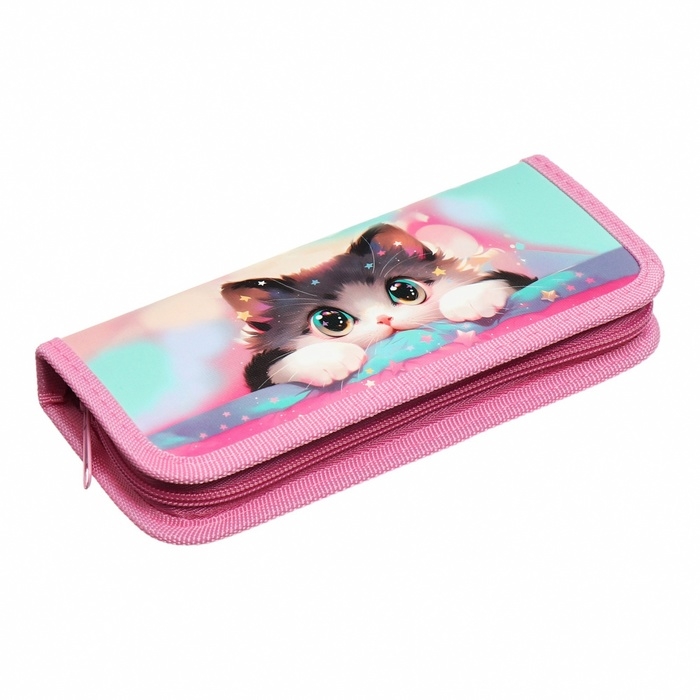 Пенал 1 секция, 90 х 195 х 25 мм, Calligrata "Котик корея", ламинированный картон