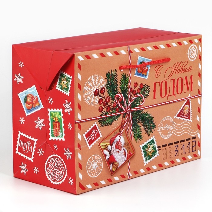 Пакет-коробка «Новогодняя почта», 28 х 20 х 13 см, Новый год