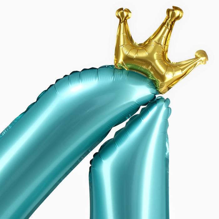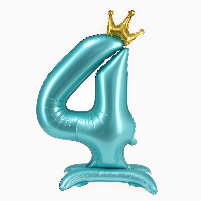 Шар фольгированный 42" «Цифра 4 с короной» на подставке, цвет голубой