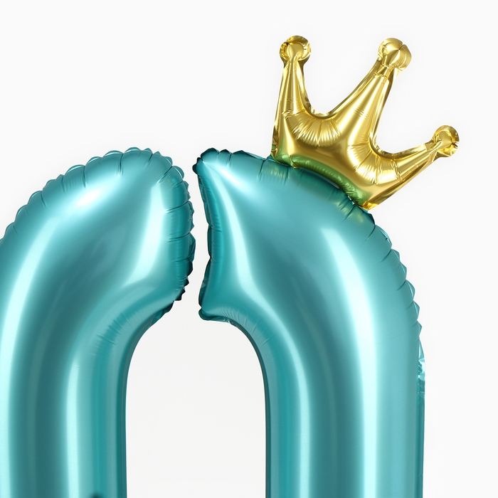 Шар фольгированный 42" «Цифра 0 с короной» на подставке, цвет голубой