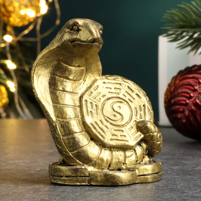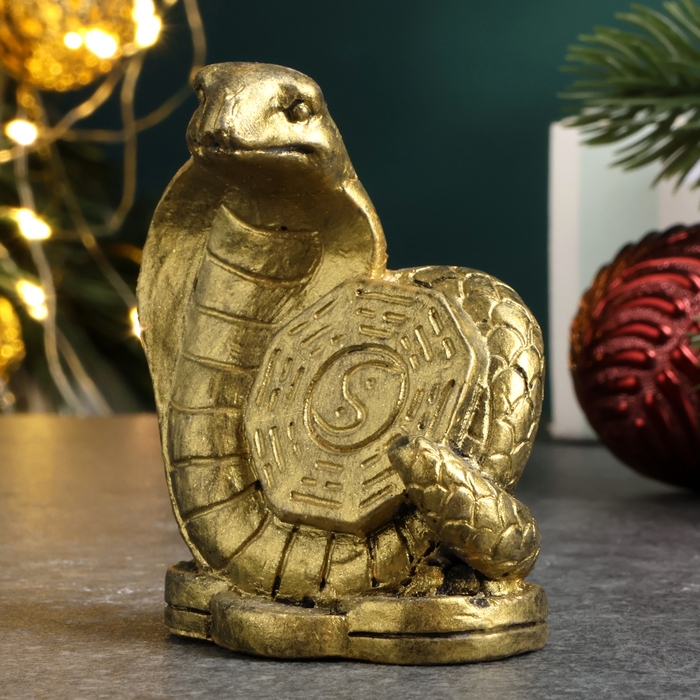 Новый год. Символ 2025. Фигура "Змея Инь-Ян" старое золото, 6х5х4см