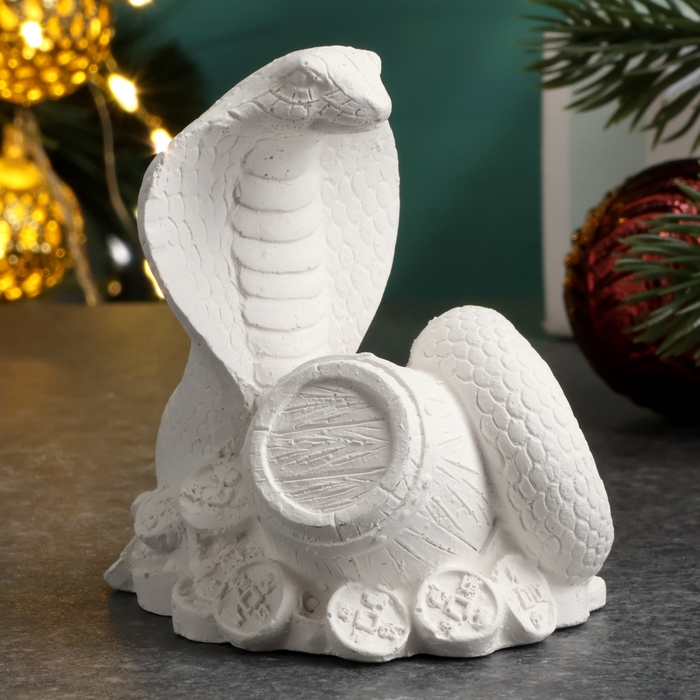 Новый год. Символ 2025. Фигура для раскраски "Змея на деньгах с бочкой", 6х6х5см