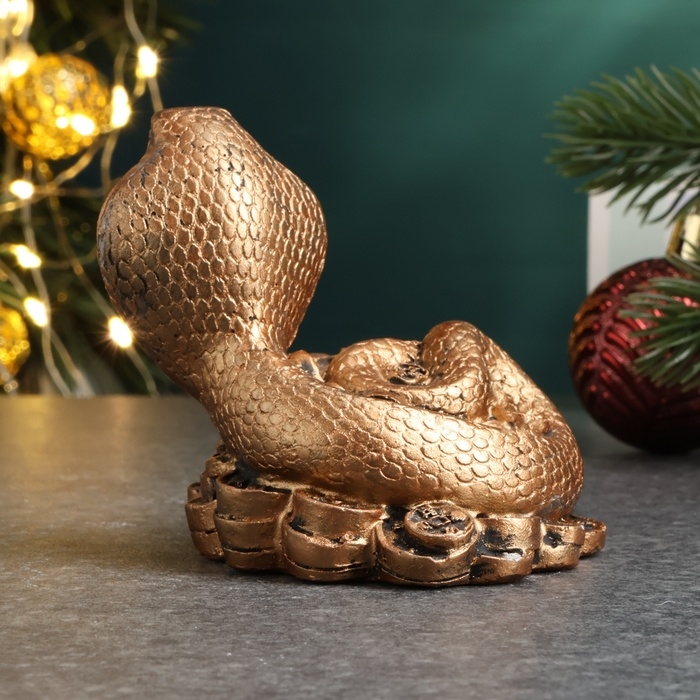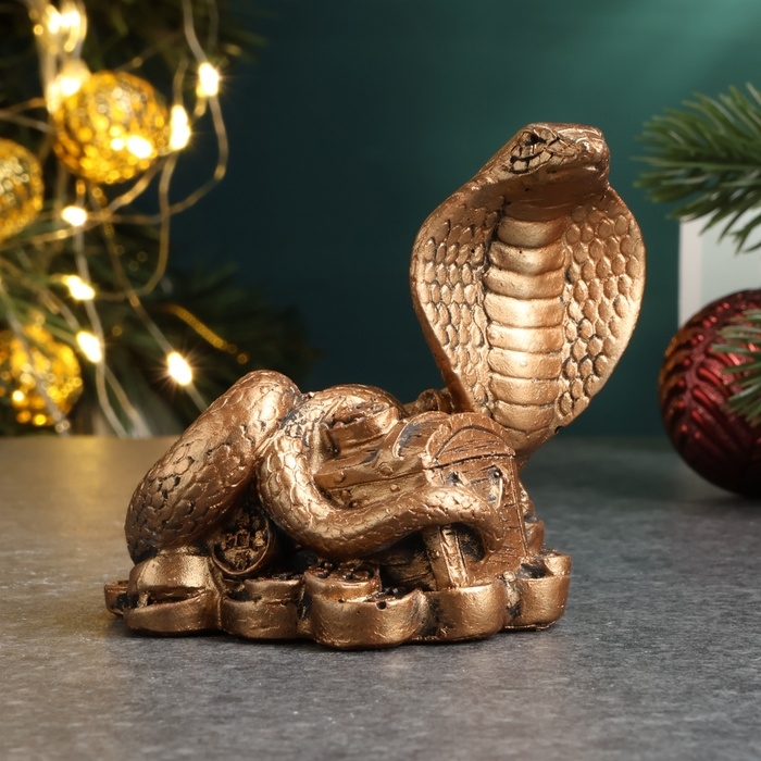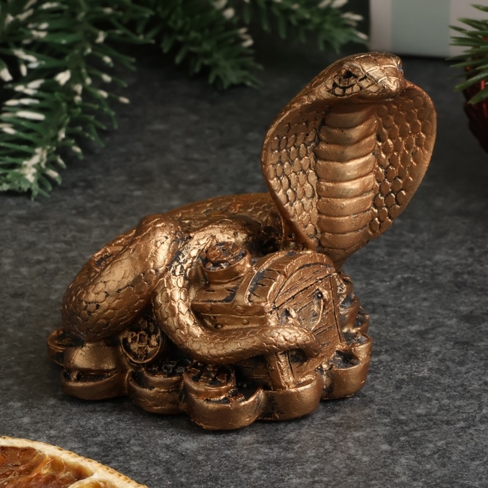 Новый год. Символ 2025. Фигура "Змея с сундуком" бронза, 6х6х5см