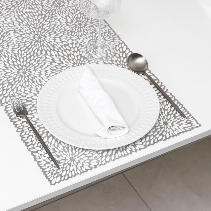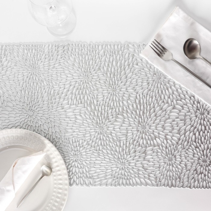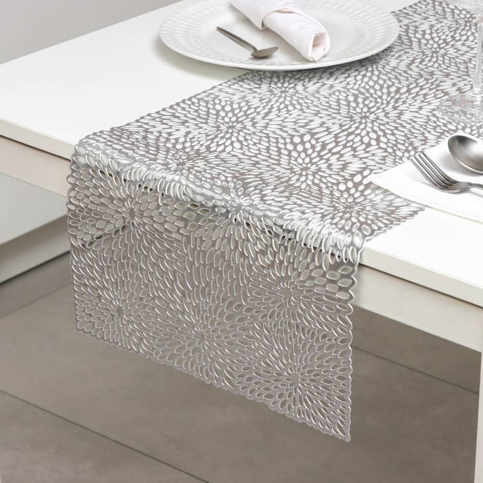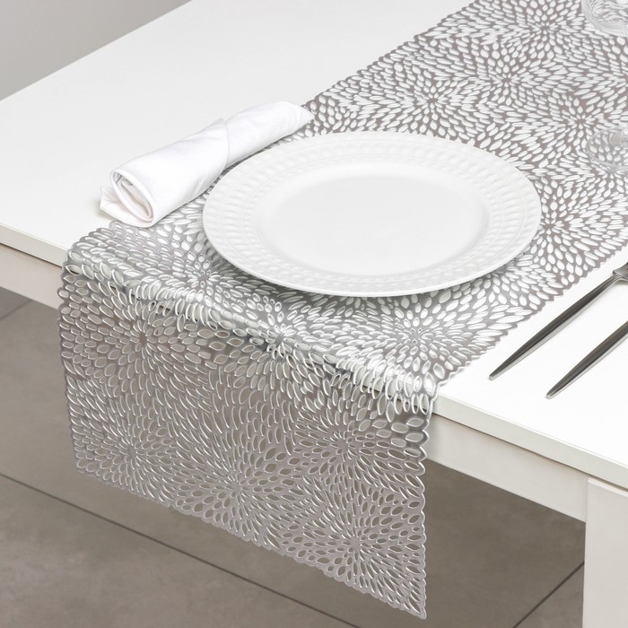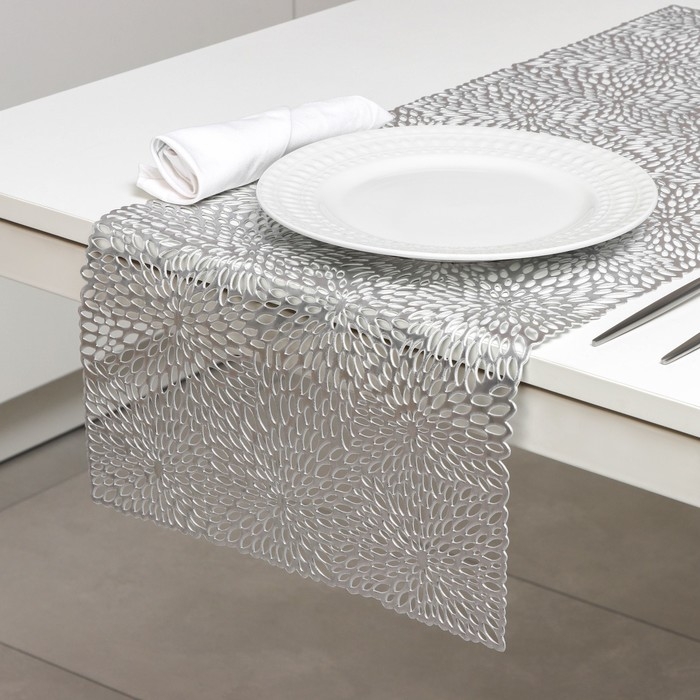 Дорожка на стол Доляна «Астры», 89×35 см, цвет серебро