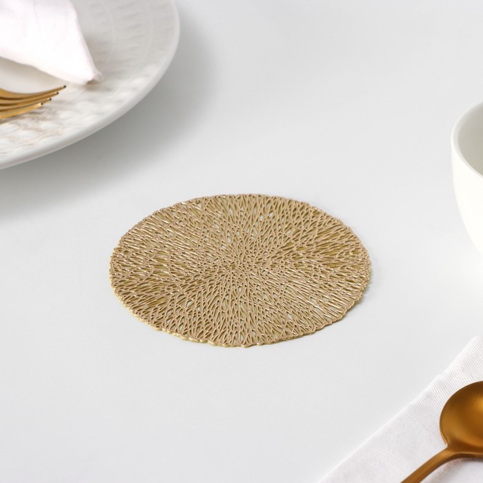 Салфетка - подставка под кружку Доляна «Листья», d=10 см, 4 шт, цвет золото