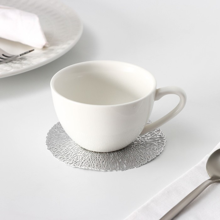 Салфетка - подставка под кружку Доляна «Листья», d=10 см, 4 шт, цвет серебро
