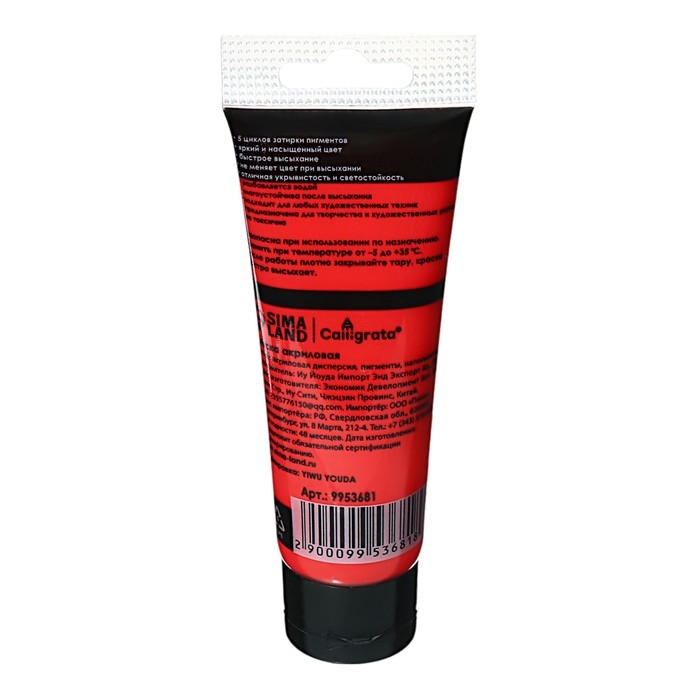 Краска акриловая матовая в тубе 75мл CALLIGRATA, КМ032, Кошениль красная, пантон 185С