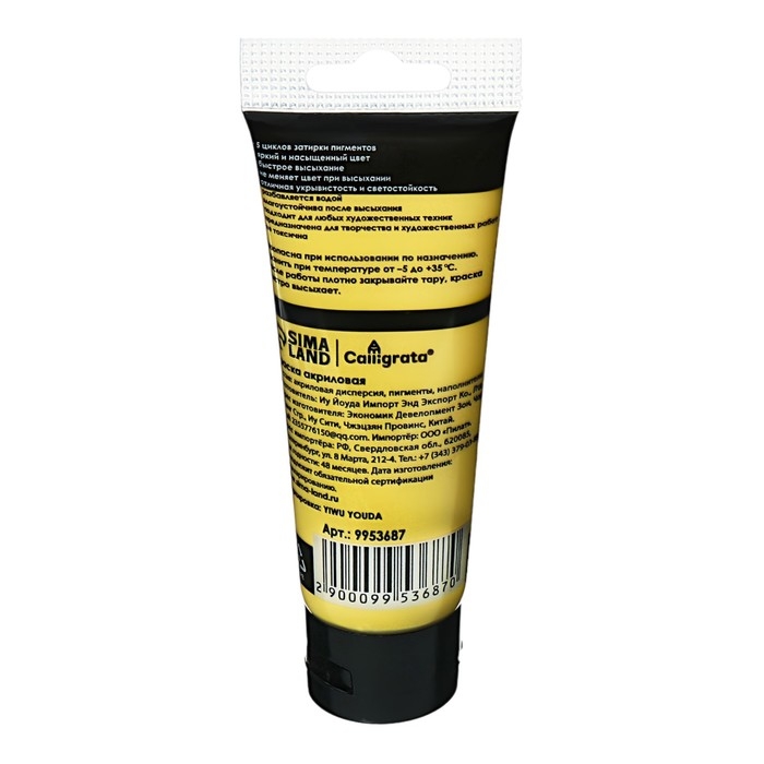 Краска акриловая матовая в тубе 75мл CALLIGRATA, КМ043, Неаполитанский желтый, пантон 1215С