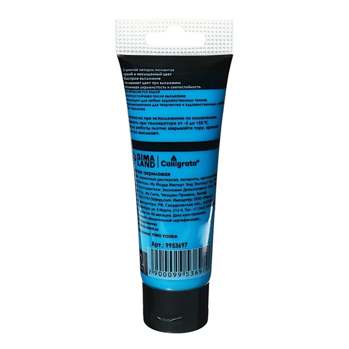 Краска акриловая матовая в тубе 75мл CALLIGRATA,КМ053, Жемчужно-сапфирово-голубой,пантон 3005С