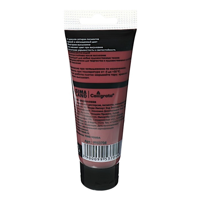 Краска акриловая матовая в тубе 75мл CALLIGRATA, КМ060, Бордово-красный, пантон 490С