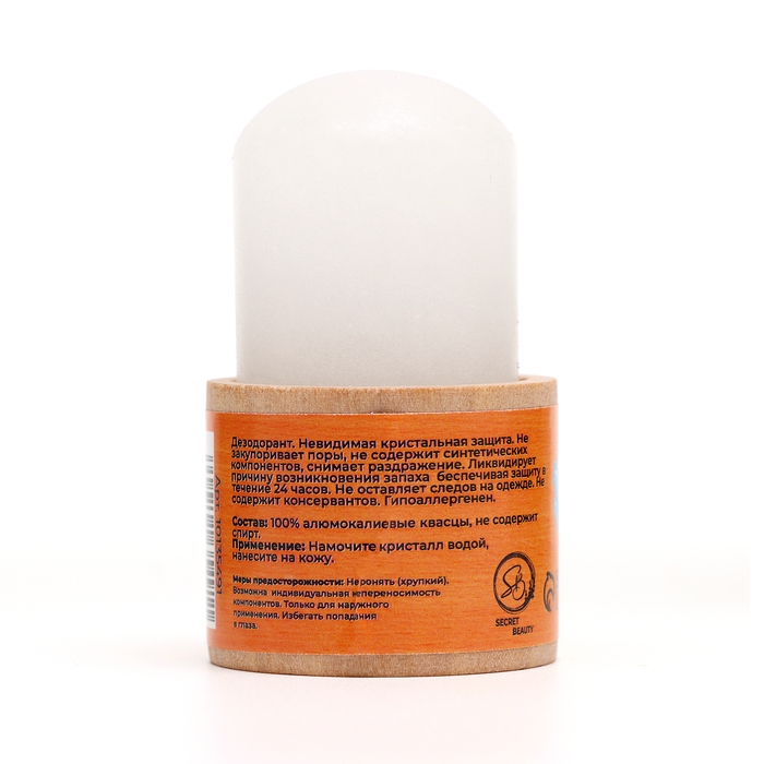 Минеральный дезодорант в стике. Представляет собой натуральный кристалл алунит, обладающий высокой антибактериальной активностью. Предотвращает появление пота и неприятного запаха в течение всего дня. Заживляет ранки и увлажняет. Подставка сделана в таком стиле, чтобы кристалл можно было использовать не только для тела, но и для прекрасного элемента интерьера, который в свою очередь обладает противомикробным действием.