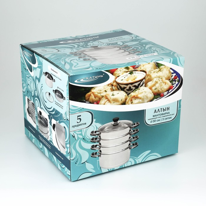Мантоварка «Алтын», 7,5 л, d=30 см, 5 секций, металлическая крышка, капсульное дно, индукция