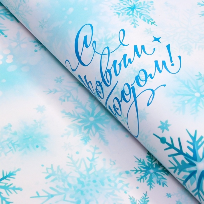 Новый год. Бумага упаковочная новогодняя "Снежинка", глянец, 1 лист, 80 г/м2 , 70 х 100 см
