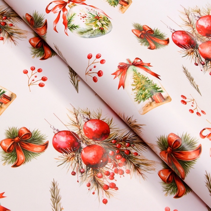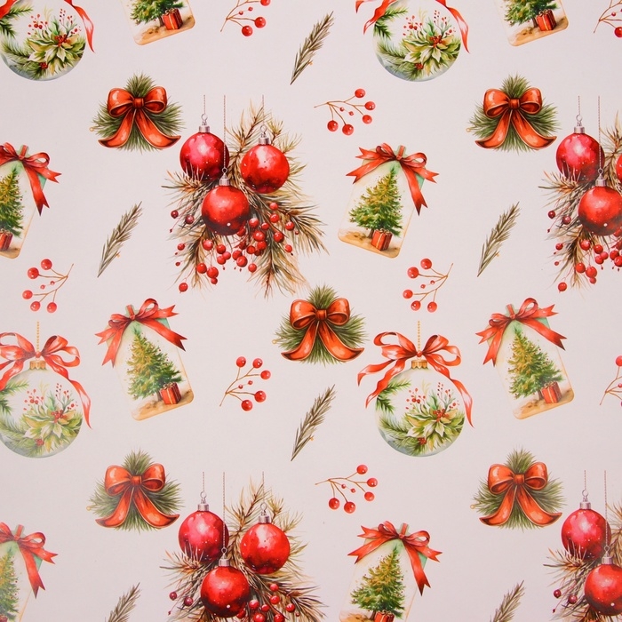 Новый год. Бумага упаковочная новогодняя "Украшения", глянец, 1 лист, 80 г/м2 , 70 х 100 см