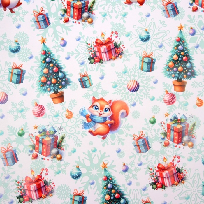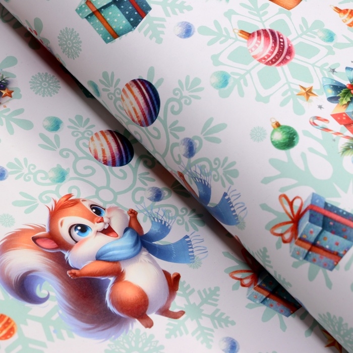 Новый год. Бумага упаковочная новогодняя "Белочка", глянец, 1 лист, 80 г/м2 , 70 х 100 см