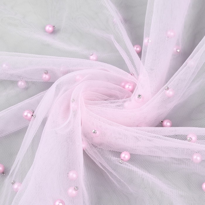 Сетка с бусинами, 150 см, 1 ± 0,2 м, цвет розовый