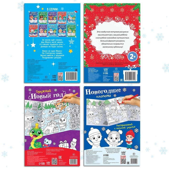 Набор длиннных раскрасок «Празднуем Новый год», 4 шт.