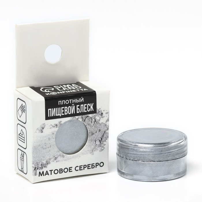 Кандурин плотный «Матовое серебро» для шоколада и капкейков, 2 г.