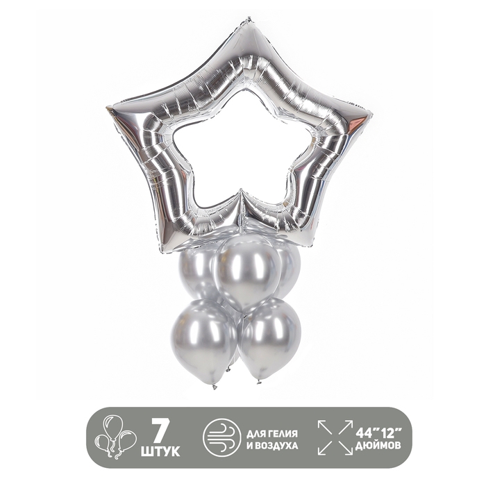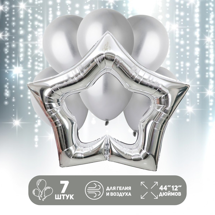 Набор шаров «Серебряная звезда», латекс, фольга, 7 шт.