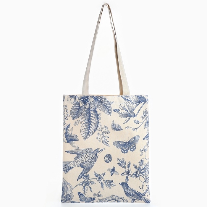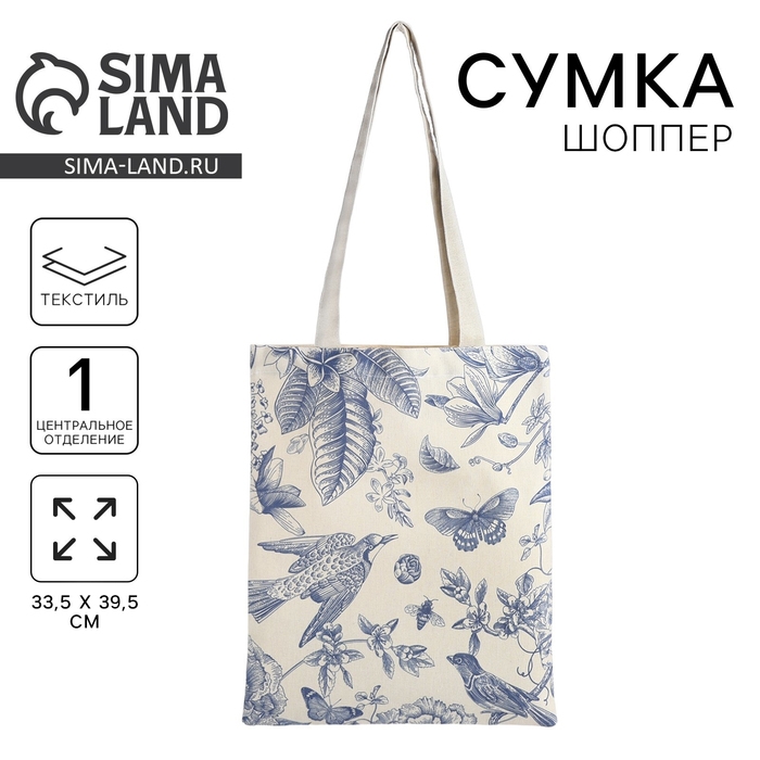 Шопер «Цветы» 33,5 х 39,5 см., отдел без молнии, без подклада, белый