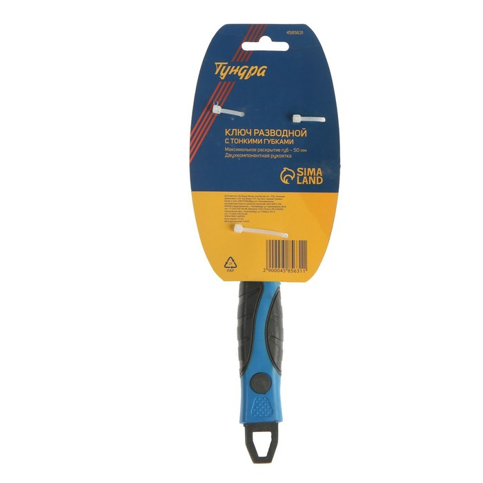 Ключ разводной с тонкими губками ТУНДРА, 2К рукоятка, раскрытие губок до 50 мм, 250 мм