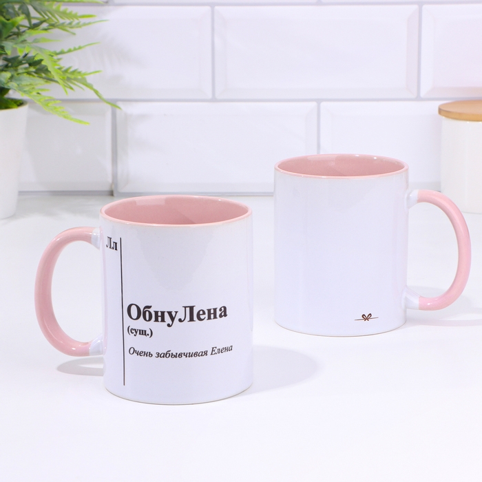 Кружка именная, сублимация "ОбнуЛена ", дно розового цвета