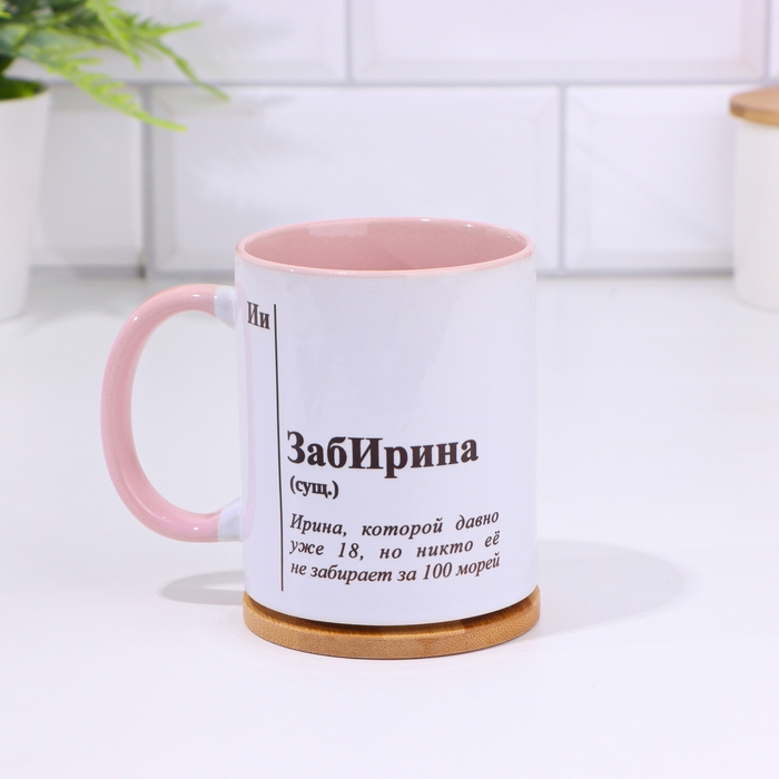 Кружка именная, сублимация "ЗабИрина", дно розового цвета