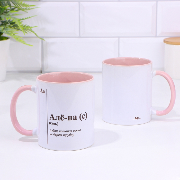 Кружка именная, сублимация "Алё-на", дно розового цвета