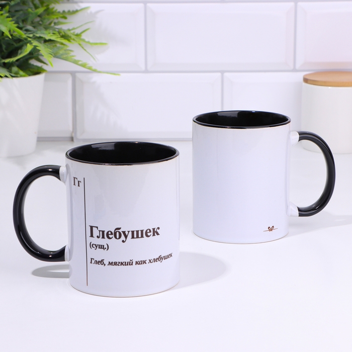 Кружка именная, сублимация "Глебушек", дно черного цвета