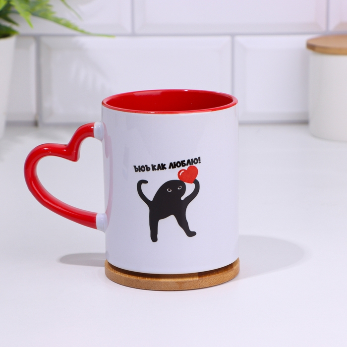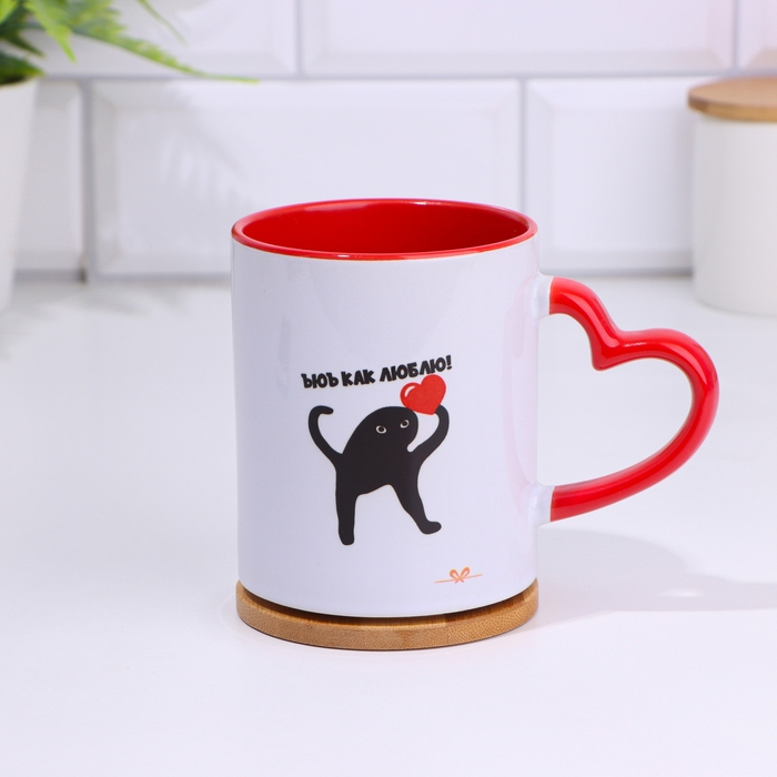 Кружка сублимация "Ух как люблю", с фигурной ручкой, дно красного цвета