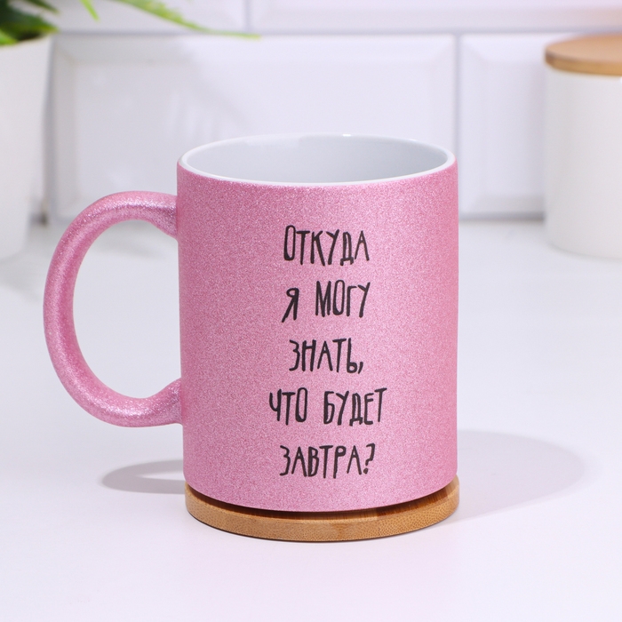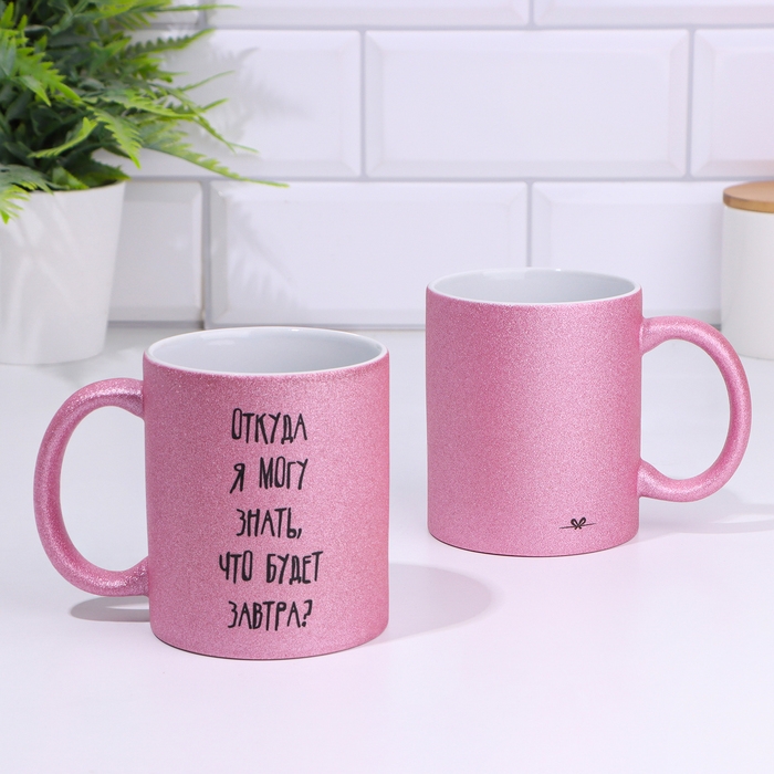 Кружка сублимация "Откуда я могу знать что будет завтра", розовый глиттер