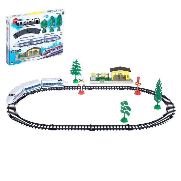 Железная дорога «Электропоезд», работает от батареек, в комплекте: деревья, знаки и станция