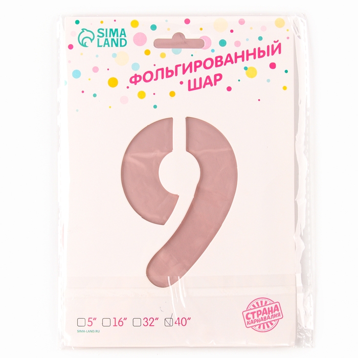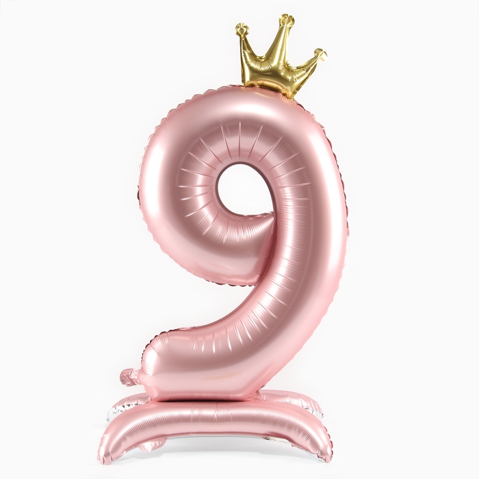 Шар фольгированный 42" «Цифра 9 с короной» на подставке, цвет розовый