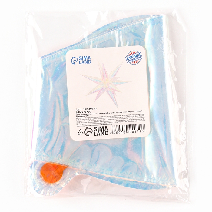 Шар фольгированный 27" «Звезда 3D», цвет прозрачный перламутровый градиент