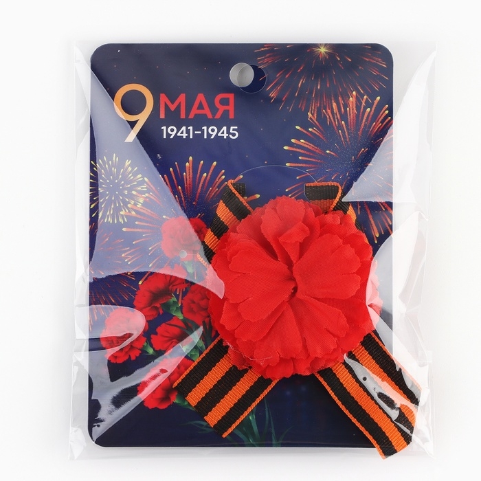 Георгиевская лента , с цветком на День победы «9 мая», 10,5 х 14 см