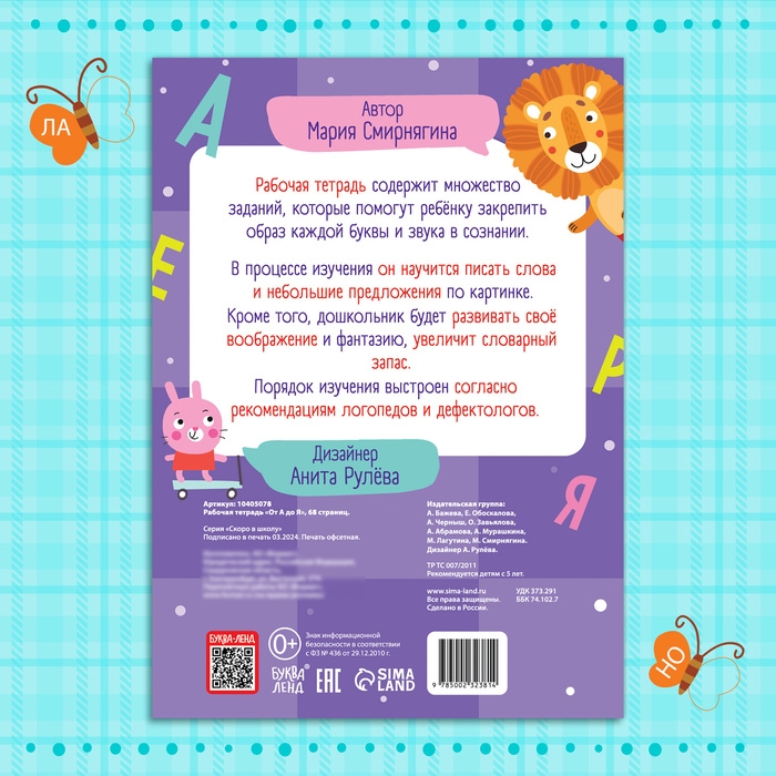 Рабочая тетрадь «От А до Я», 68 стр.