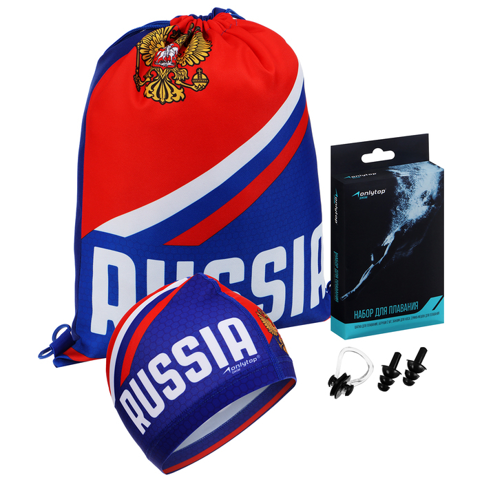 Набор для плавания ONLITOP Russia: шапочка, беруши, зажим для носа, мешок