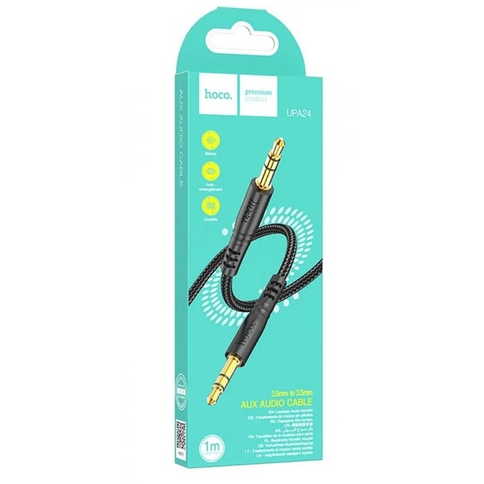 Кабель AUX Hoco UPA24, Jack 3.5 мм (m) - Jack 3.5 мм (m), 1 м, нейлон, чёрный