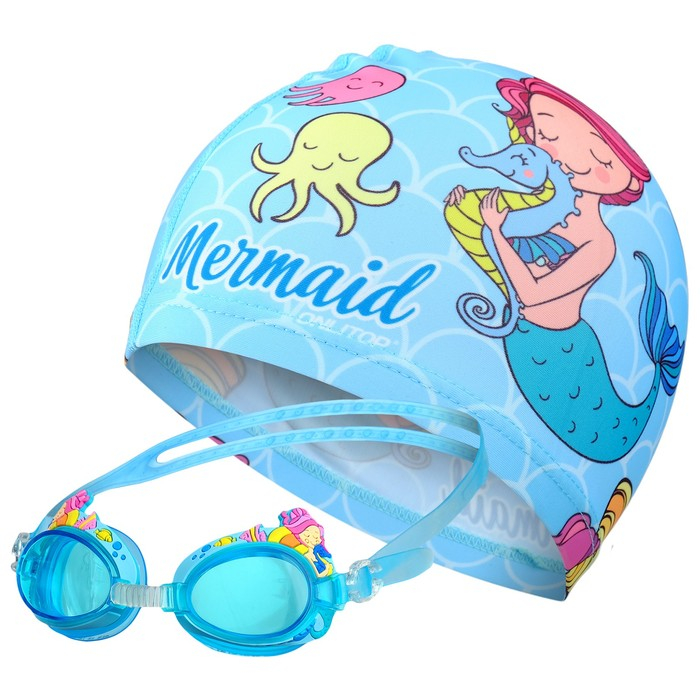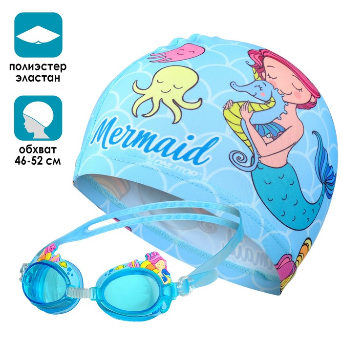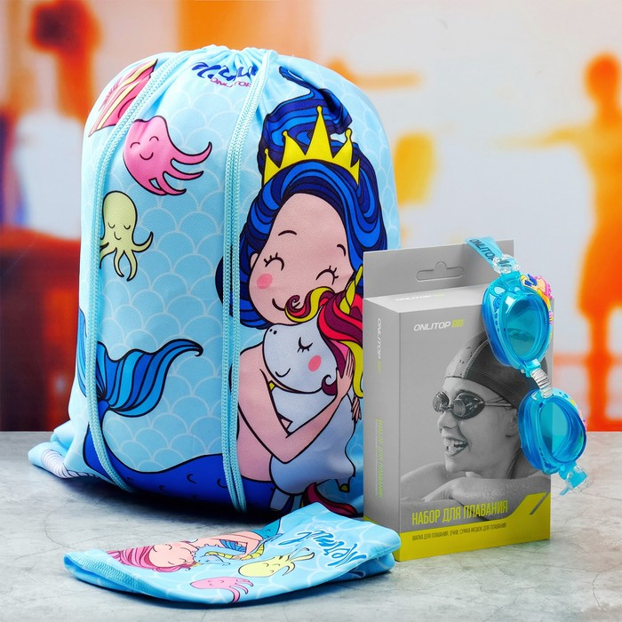 Набор для плавания детский ONLYTOP «Русалка»: шапочка, очки, мешок