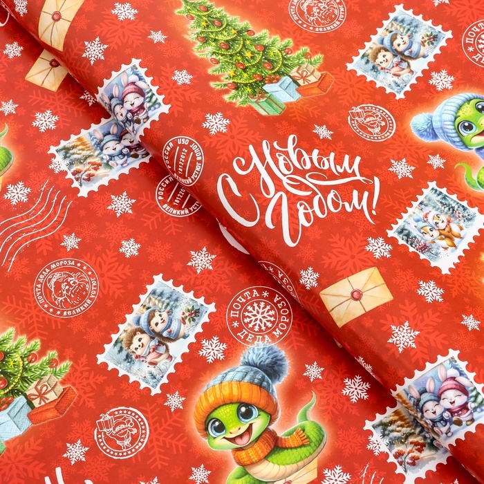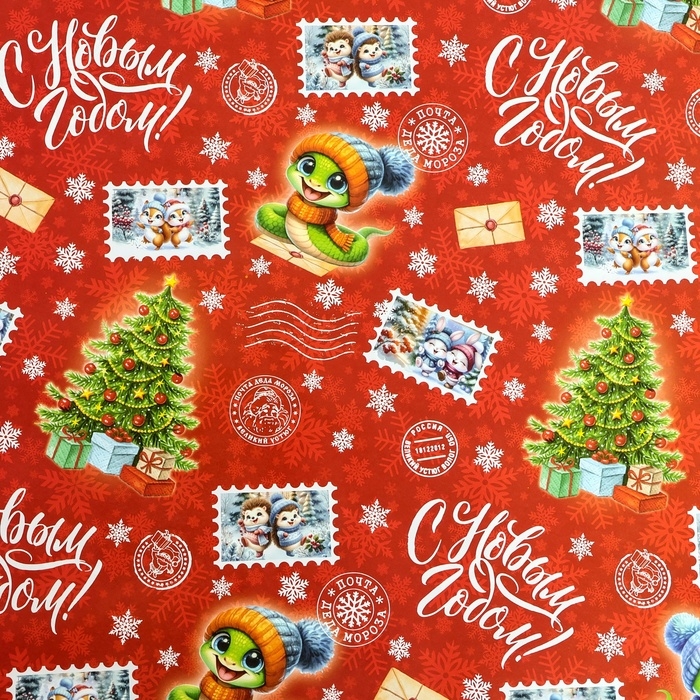 Новый год. Бумага упаковочная "Год змеи", глянец, 80 г/м2 , 1 лист, 70 х 100 см