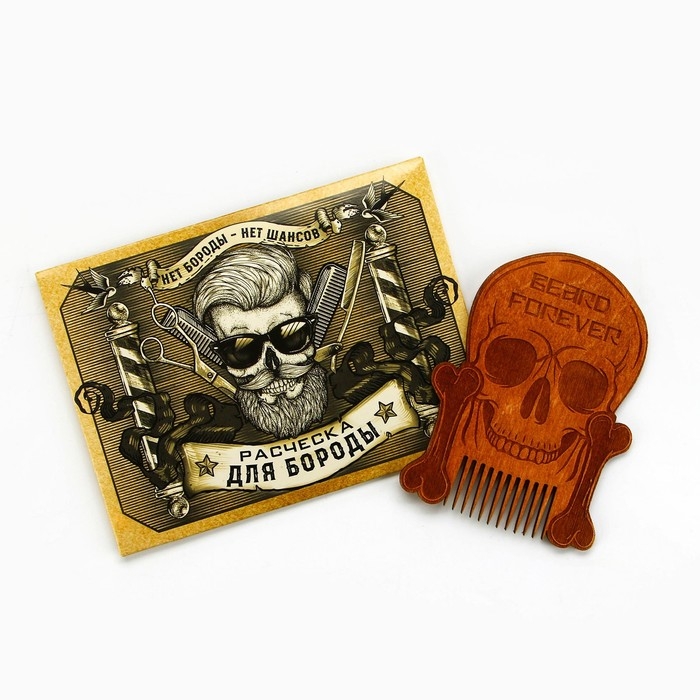 Расческа для бороды в конверте «Череп» 7,3 х 9,7 см