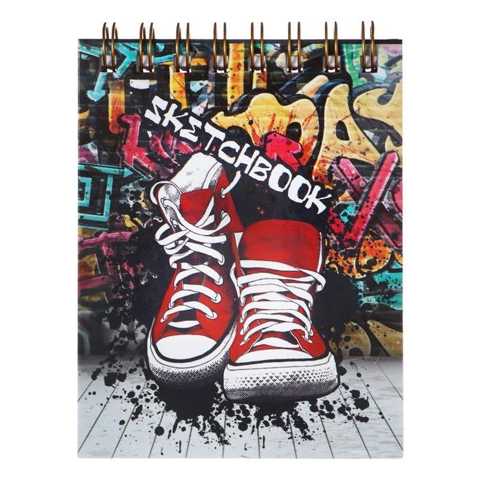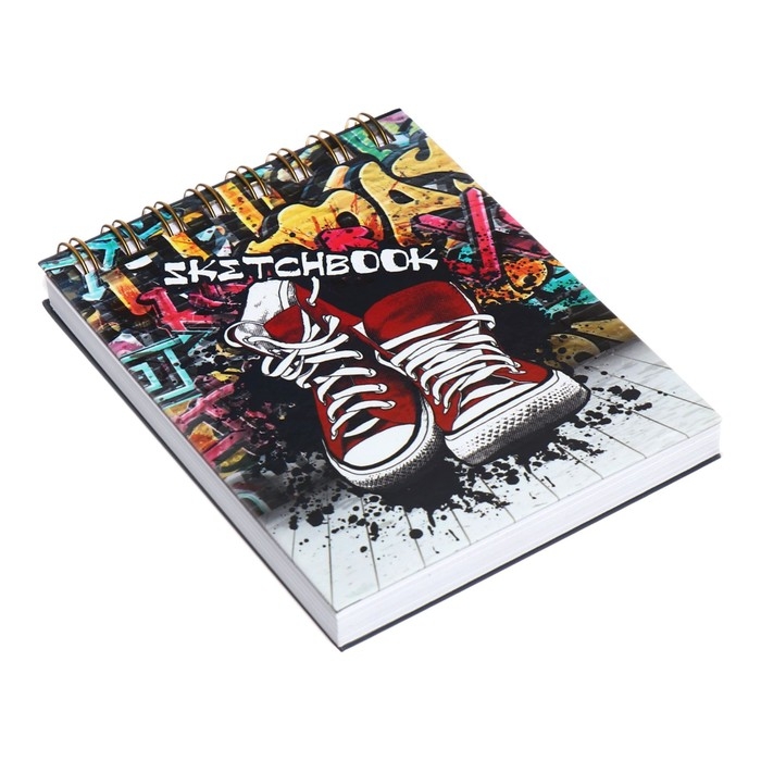 Скетчбук А6, 80 листов на гребне по короткой стороне "Кеды", твёрдая обложка, блок 100 г/м²