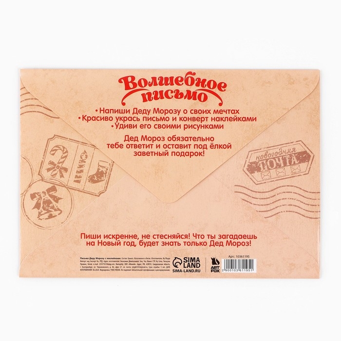 Письмо Деду Морозу «Новый год: Новогодняя почта. Волшебное письмо», с наклейками