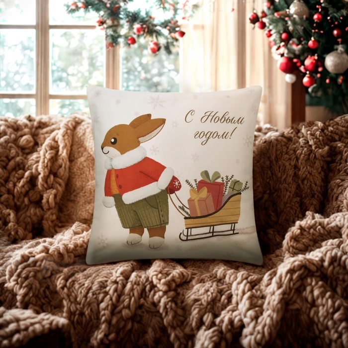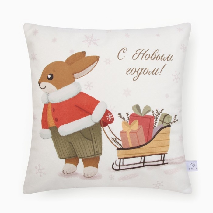 Новый год. Чехол на подушку Этель "Зайчик с подарками", 40*40 см, 100 п/э, велюр