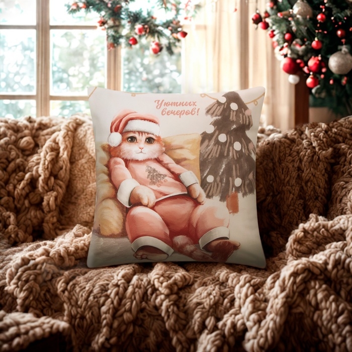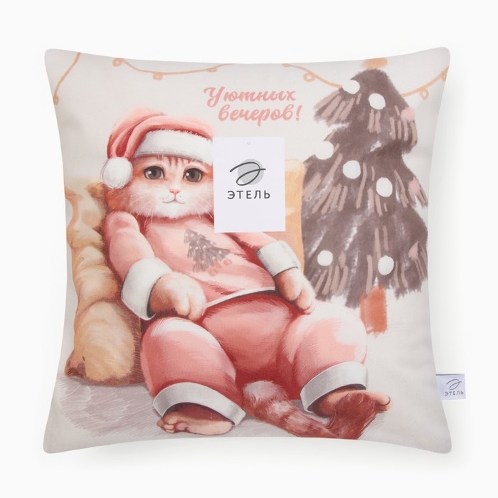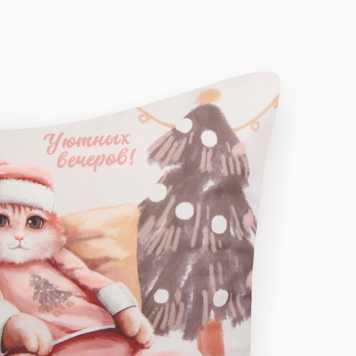 Новый год. Чехол на подушку Этель "Уютных вечеров", 40*40 см, 100 п/э, велюр